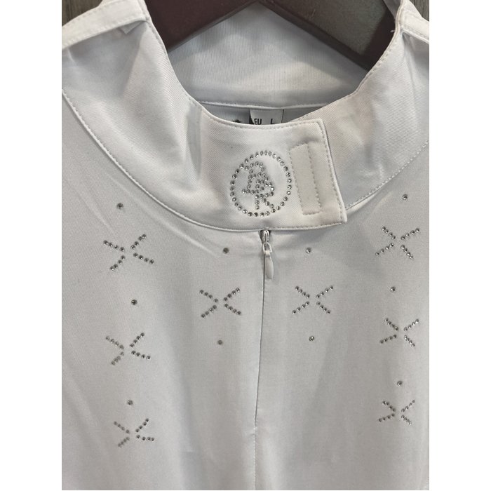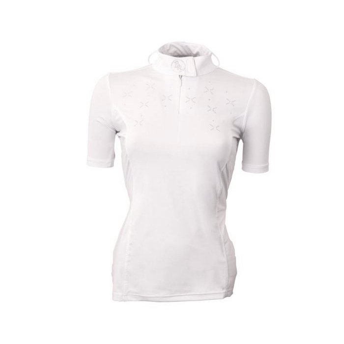 Sacensību krekls ar īsām piedurknēm ar noslēgtu rāvējslēdzēju zem apkaklītes.Uz apkaklītes BR logo no dimantu imitācijas kristāliem. Apkaklītei velkro aizdare. Materiāls: Poliesteris. Mitrumu regulējošs, ātri žūstošs un elpojošs.