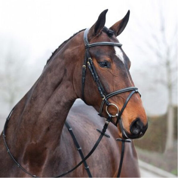 Your horse will shine in this stylish flash bridle with exquisite stitching. Ride in style with this elegant, classic snaffle bridle with a removable flash noseband. The web reins are wide enough to rest easily in your hands and have superior grip with leather stops. The traditional stitching is correct in any show setting. This rich deep leather bridle will look lovely on any colour horse.
