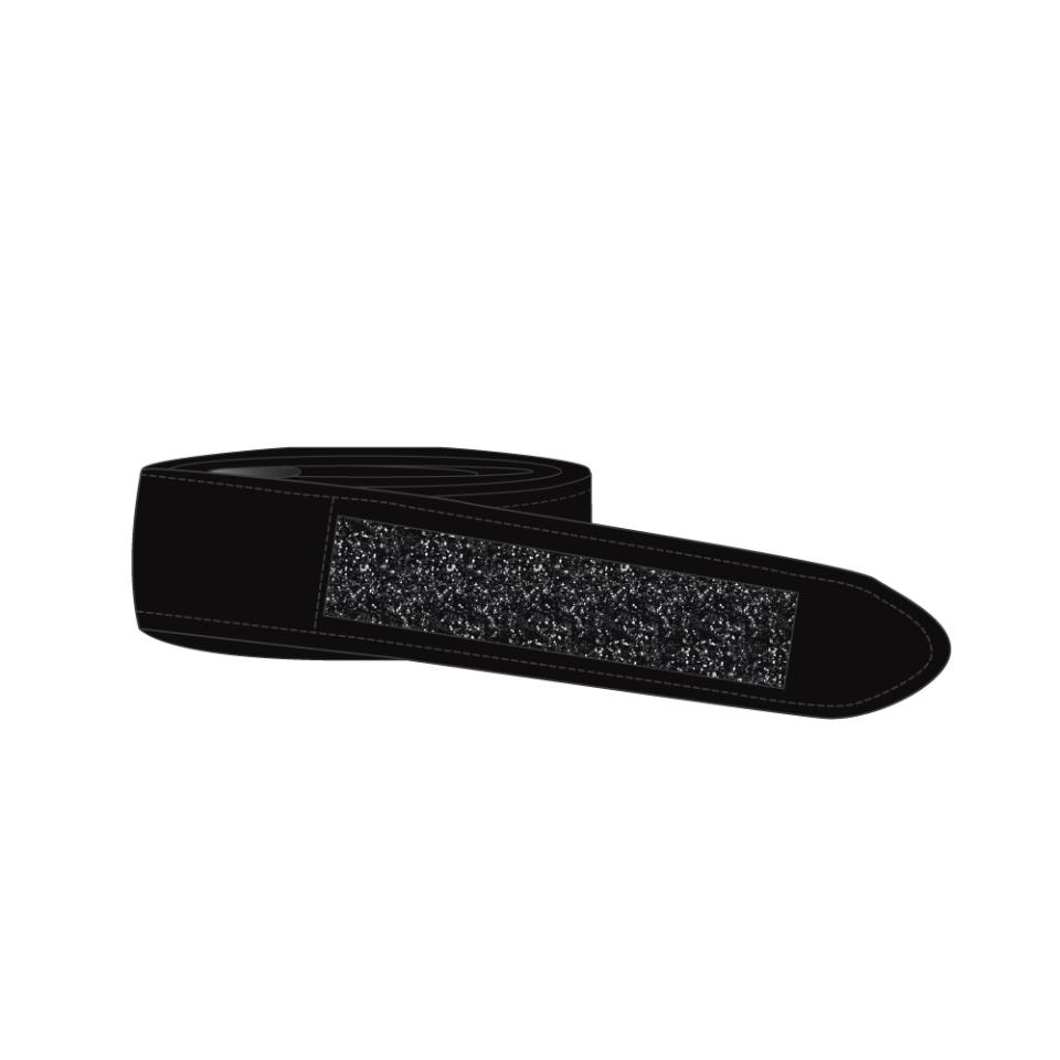 Soft leather stirrup with a nylon core and metal buckle. With decorative glitter and small embossed logo.