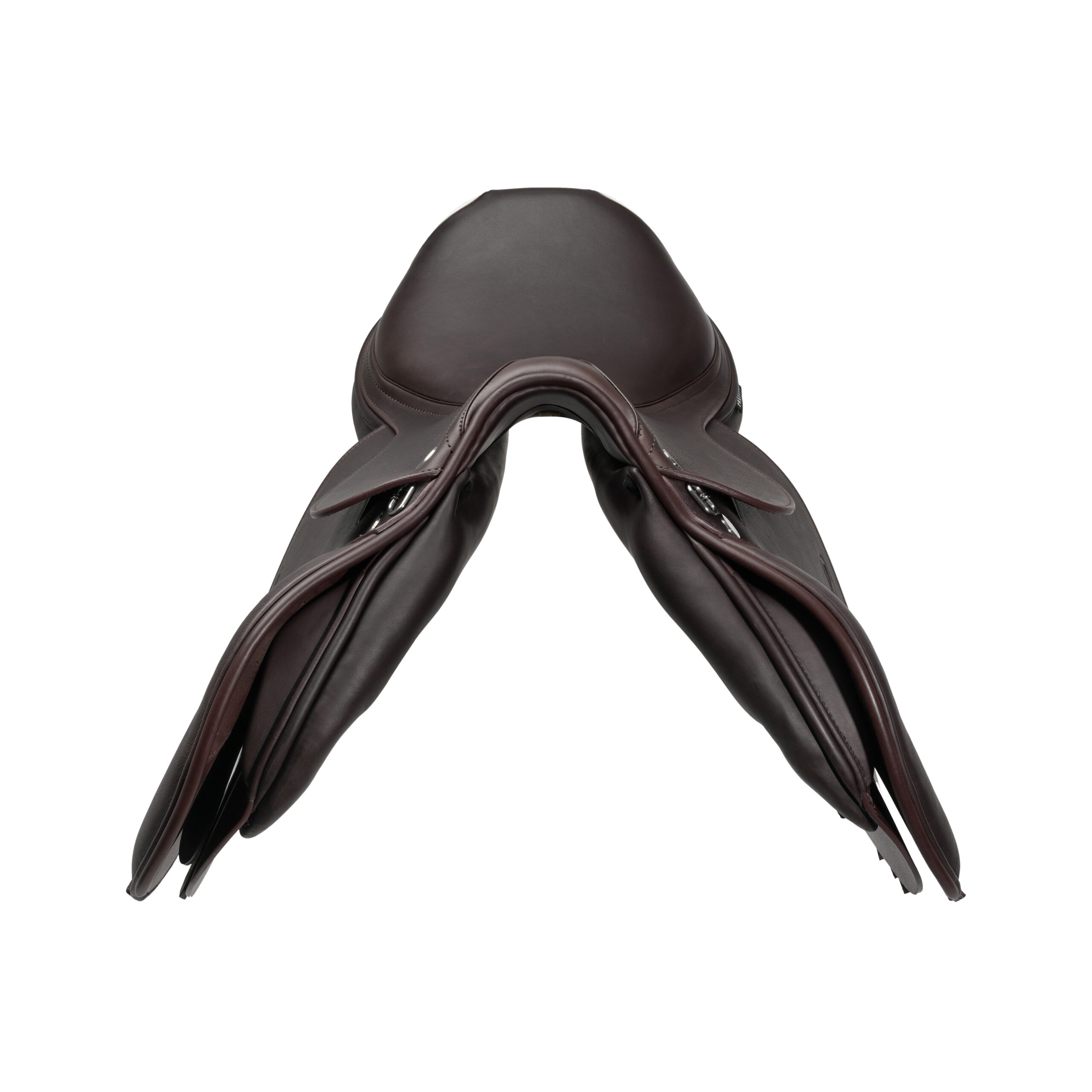 Jumping saddle from Italian manufacturer Prestige. A simple and elegant model with a medium-deep seat, a standard frame and high-quality double leather. Anatomically adapted and comfortable for the horse’s back.