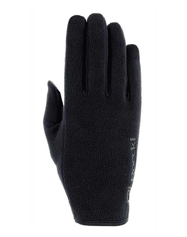 Simple, convenient, versatile, warm: The high-quality NOVILLE by Roeckl Sports is an efficient allrounder that reliably keeps hands and fingers warm while offering maximum wear comfort both in the stable and beyond. As a member of the low-resource, consistently PFAS-free ECO.SERIES by Roeckl Sports, this model is made from a particularly high share of ecologically oriented materials. The entire glove is crafted from fluffy, soft, wonderfully elastic ECO Micro Fleece consisting of 100% recycled polyester, which makes it soft to the touch and flexibly follows every movement. A convenient elastic band on the cuff ensures a perfectly snug fit and securely seals the glove off at the wrist, thus keeping all the warmth inside the glove. Clever: The thumb and the index finger are TOUCHSCREEN COMPATIBLE, allowing you to effortlessly use your smartphone with your gloves on. As gloves are sure to get dirty in no time when working in the barn, the NOVILLE is machine-washable at 30° C (86° F). Conclusion: an allrounder glove that is as elegant as it is functional—a great choice not just at the stable or on your way to it but also when going for a stroll through the snowy countryside without a horse. Available in versatile black to match any outfit featuring the Roeckl Sports logo on the edge of the hand.Does not contain leather.