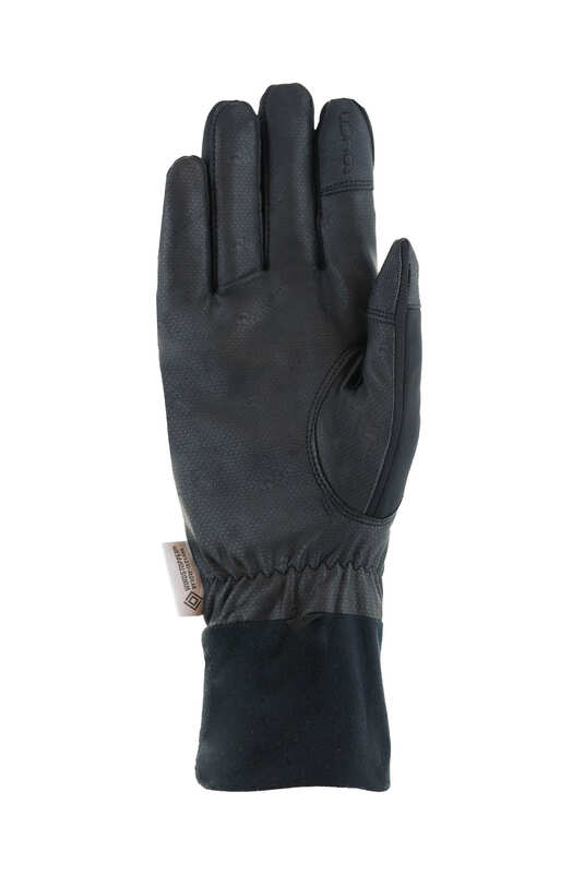 Elongated construction meets high-end materials: The WHEATON not only reliably protects riders against the wind and the cold in winter but also ensures excellent tactility for sensitive communication with the horse. This high-function riding glove is crafted with a particularly high share of recycled materials and components, thus carrying the “high recycling ratio” label. The backhand fashioned from WINDSTOPPER® material by GORE-TEX LABS provides effective protection against the wind, keeping hands and fingers nice and warm even on prolonged trail rides or training sessions. The palm is made from highly breathable and tactile yet durable MICRO-AIR, granting a reliable non-slip grip on the reins and equipment. Clever: The material has been slightly extended toward the backhand at the index finger for an even better grip. Additional wear comfort is provided by the Roeckl-exclusive COMFORT-CUT, which eliminates the need for additional facings on the index finger. Another highlight is the narrow construction featuring an elastic band that extends well over the wrist and makes sure the warmth stays inside the glove. The recycled polyester Eco lining and a soft Eco stretch fleece cuff do the rest to keep the cold away. The WHEATON is TOUCHSCREEN COMPATIBLE, meaning it can simply stay on when tapping and swiping on the smartphone. And it is machine-washable at 30° Celsius (86° Fahrenheit)—cleaned and ready for action in no time. Comes in classic black with reflective design elements and Roeckl Sports logo. Made without leather.