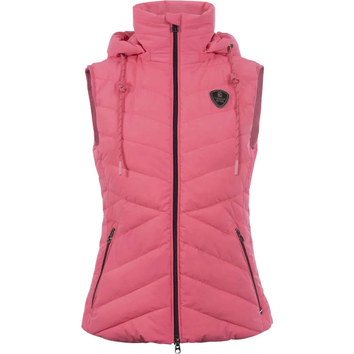 Īsa, pieguļoša stepēta veste ar kapuci un mākslīgo dūnu pildījumu