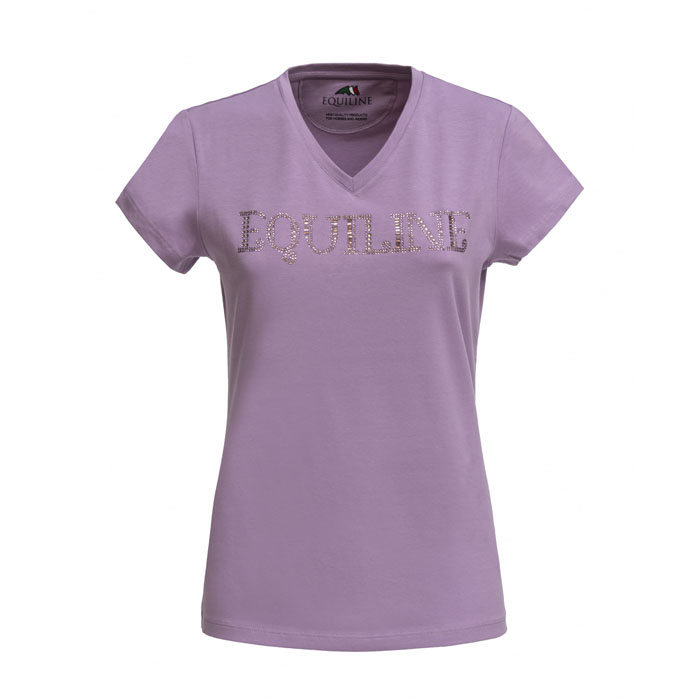 Augstas kvalitātes, Itālijā ražots sieviešu t-krekls ar dekoratīviem mirdzošiem elementiem.