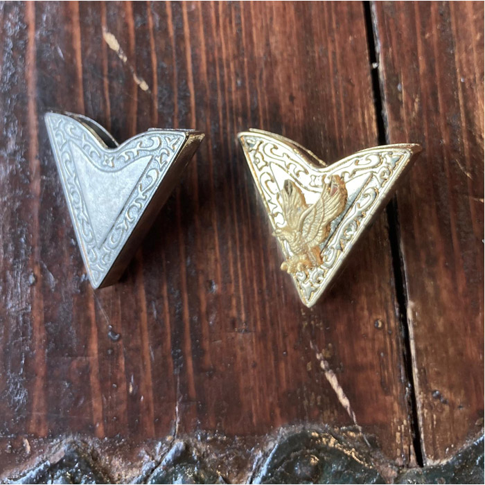 Uz krekla apkakles stūrīšiem uzliekami metāla dekori
