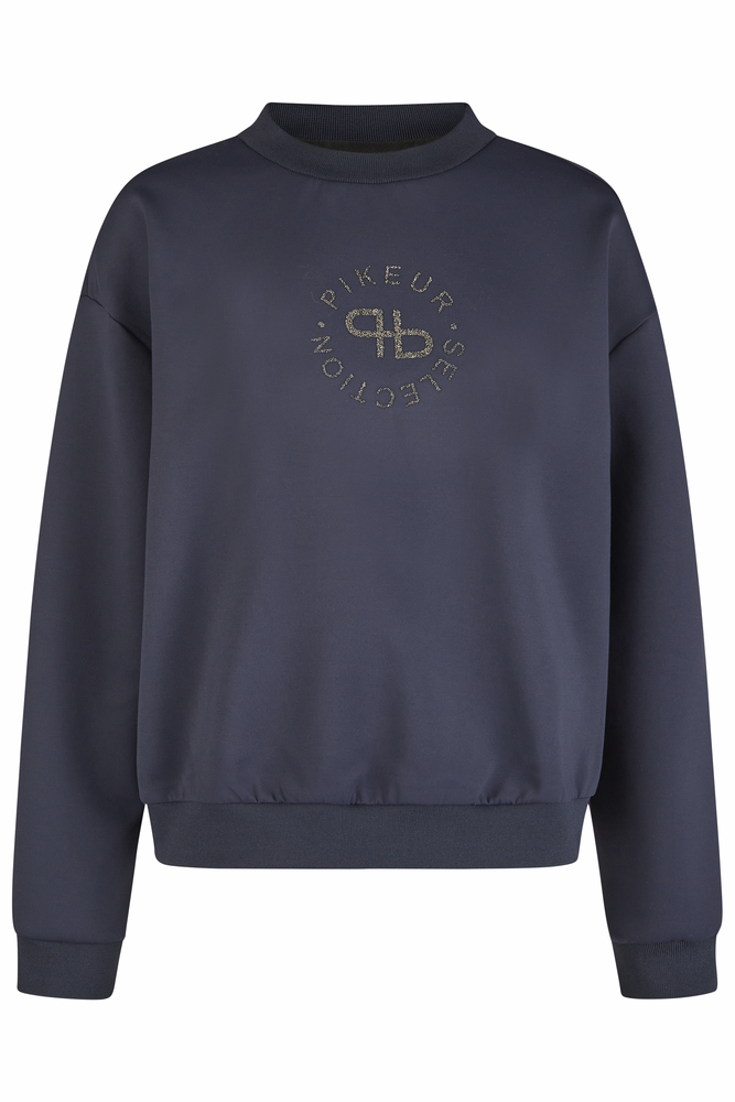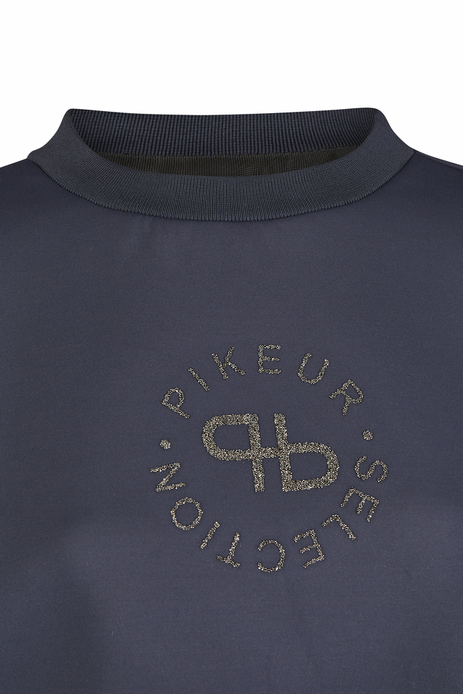 Džempera priekšpusē Pikeur Selection logotips: apaļš logo no  smalkām pērlītēm.